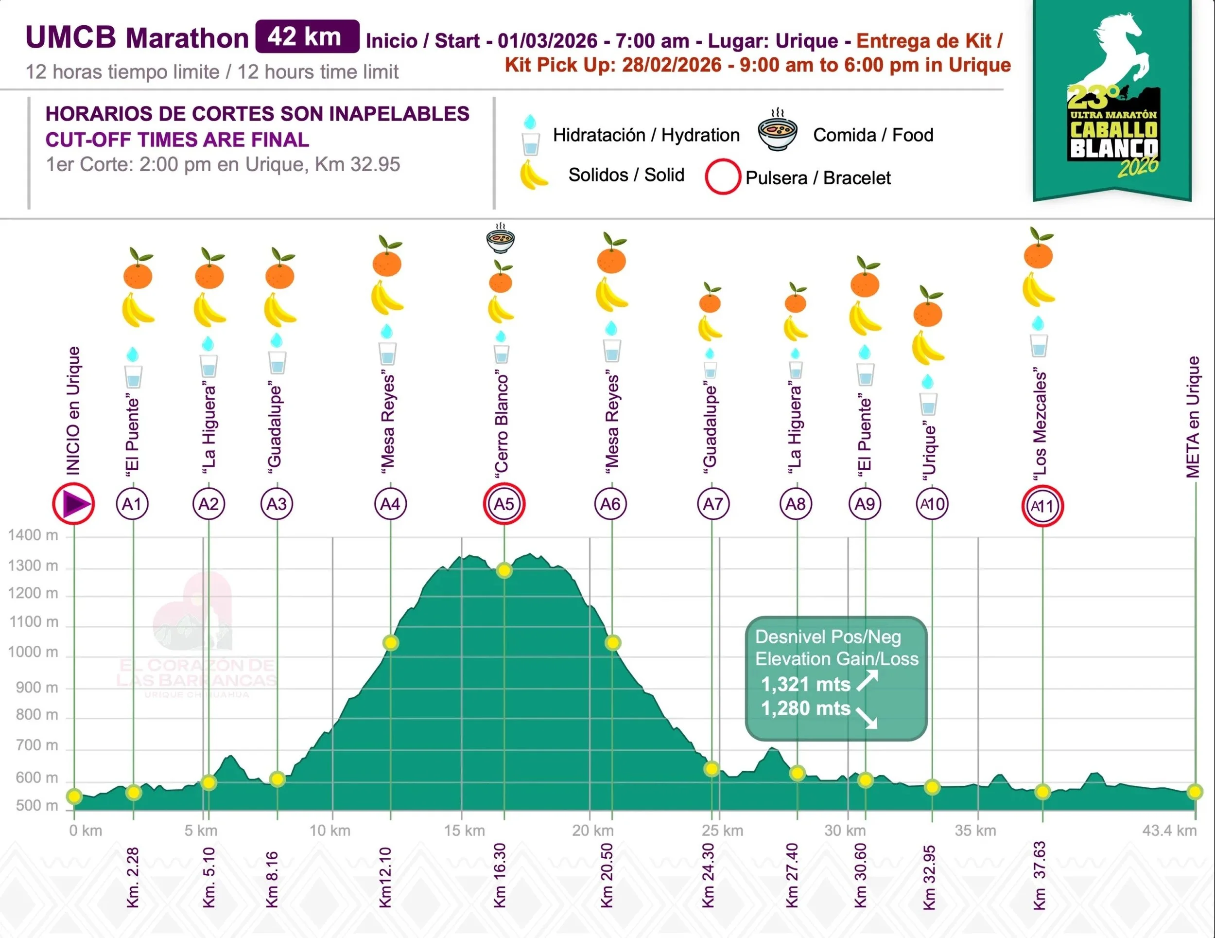 Seguridad: Las Barrancas del Cobre son un paisaje remoto y accidentado. Si bien existen múltiples mecanismos para ayudarlo en caso de que experimente una lesión o un desafío inesperado mientras participa, esperamos que todos los corredores estén en buena forma física y sean capaces de completar la carrera para la que se inscribieron. El recorrido está bien señalizado; sin embargo, lleve consigo el mapa que se le proporcionará con su paquete de inscripción. Hay personal de la Cruz Roja en los principales puestos de socorro. Hay personal médico en Urique. Hay múltiples puestos de avituallamiento con hidratación y nutrición más que adecuadas. Tendremos "barridos" del recorrido para asegurarnos de que nadie permanezca en los senderos después del evento.