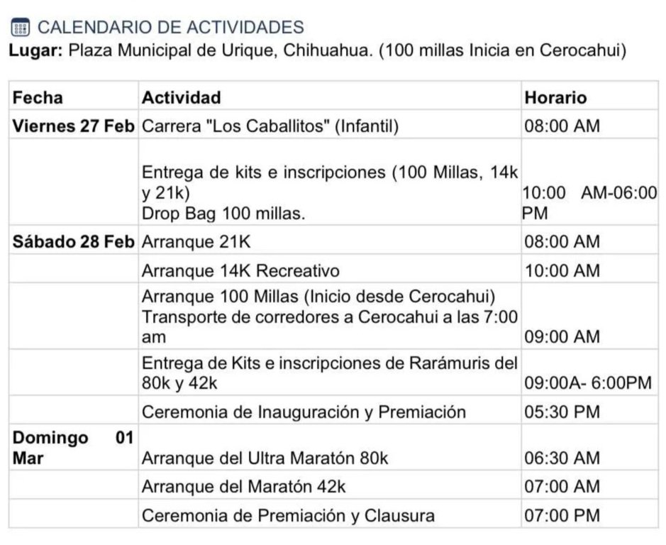 Las pruebas de carrera de Ultra Marathon Caballo Blanco y Caballitos Runs se llevarán a celebrada el fin de semana del 27 de febrero y el 1 de marzo de 2026, sin embargo, la Ultra Caballo Blanco es mucho más que solo las pruebas de carrera. Es verdaderamente un viaje mágico y la mejor manera de vivirlo es llegar a los Cañones lo más temprano posible en la semana. Esto es especialmente cierto ahora que los alojamientos del pueblo de Urique se llenan por completo y antes cada año. Además de los eventos relacionados con las carreras, los paquetes de viaje todo incluido incluyen aún más experiencias culturales y aventuras para disfrutar de toda la magia de la Sierra Tarahumara (ver información del paquete a continuación).